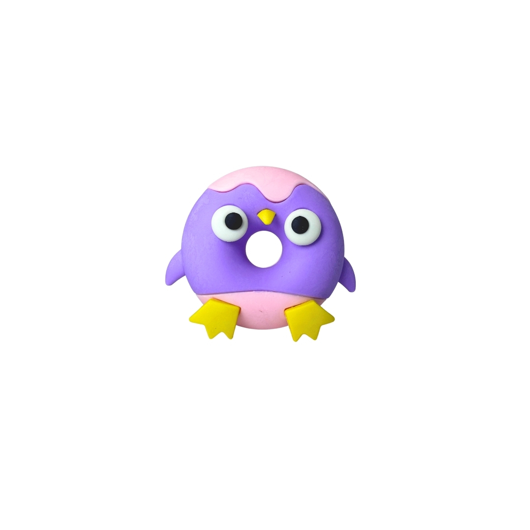 Hermoso maxi borrador en forma de dona decorado con diseño de búho y colores morado/rosado/amarillo
